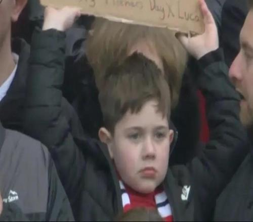 和母親節(jié)沖突,小球迷舉牌:抱歉媽媽,但我是首次現(xiàn)場(chǎng)看曼聯(lián)