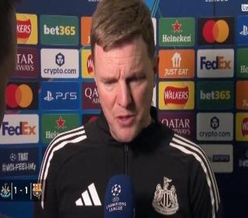 歐冠1/8決賽首回合,紐卡主場(chǎng)1-1戰(zhàn)平巴薩,紐卡主帥埃迪-豪賽后接受了拜因體育的采訪。我不知道該祝賀你們打出...